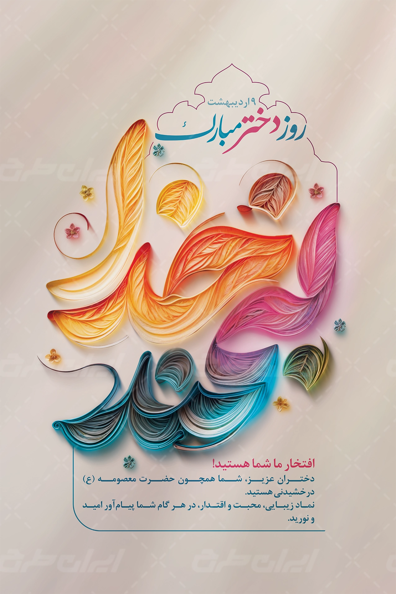 تایپوگرافی لبخند خدا و متن گرامیداشت ولادت حضرت معصومه (س) و روز دختر می باشد که توسط تیم ایران طرح طراحی شده است.