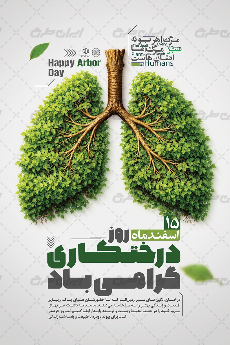 تصویر درخت و متن گرامیداشت 15 اسفند روز درختکاری می باشد که توسط تیم ایران طرح طراحی شده است.