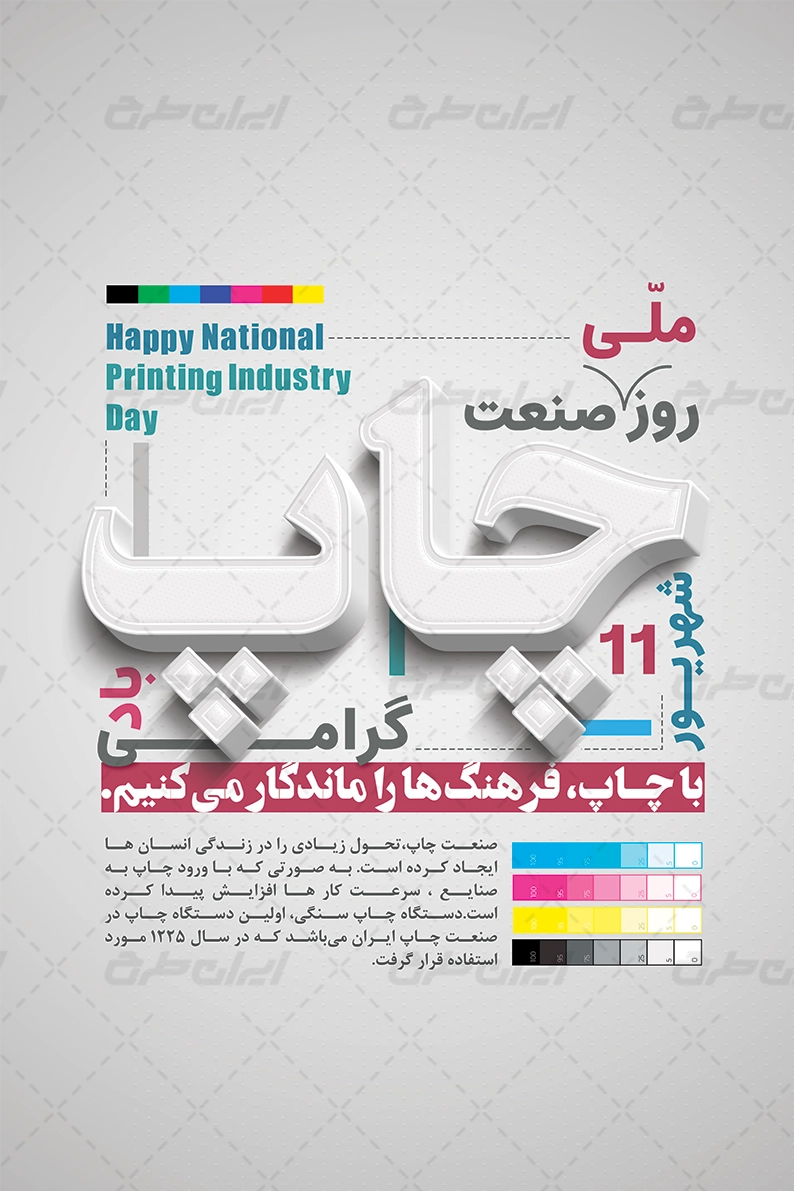 وکتور و متن گرامیداشت روز ملی صنعت چاپ میباشد که توسط تیم خلاق ایران طرح طراحی شده است.
