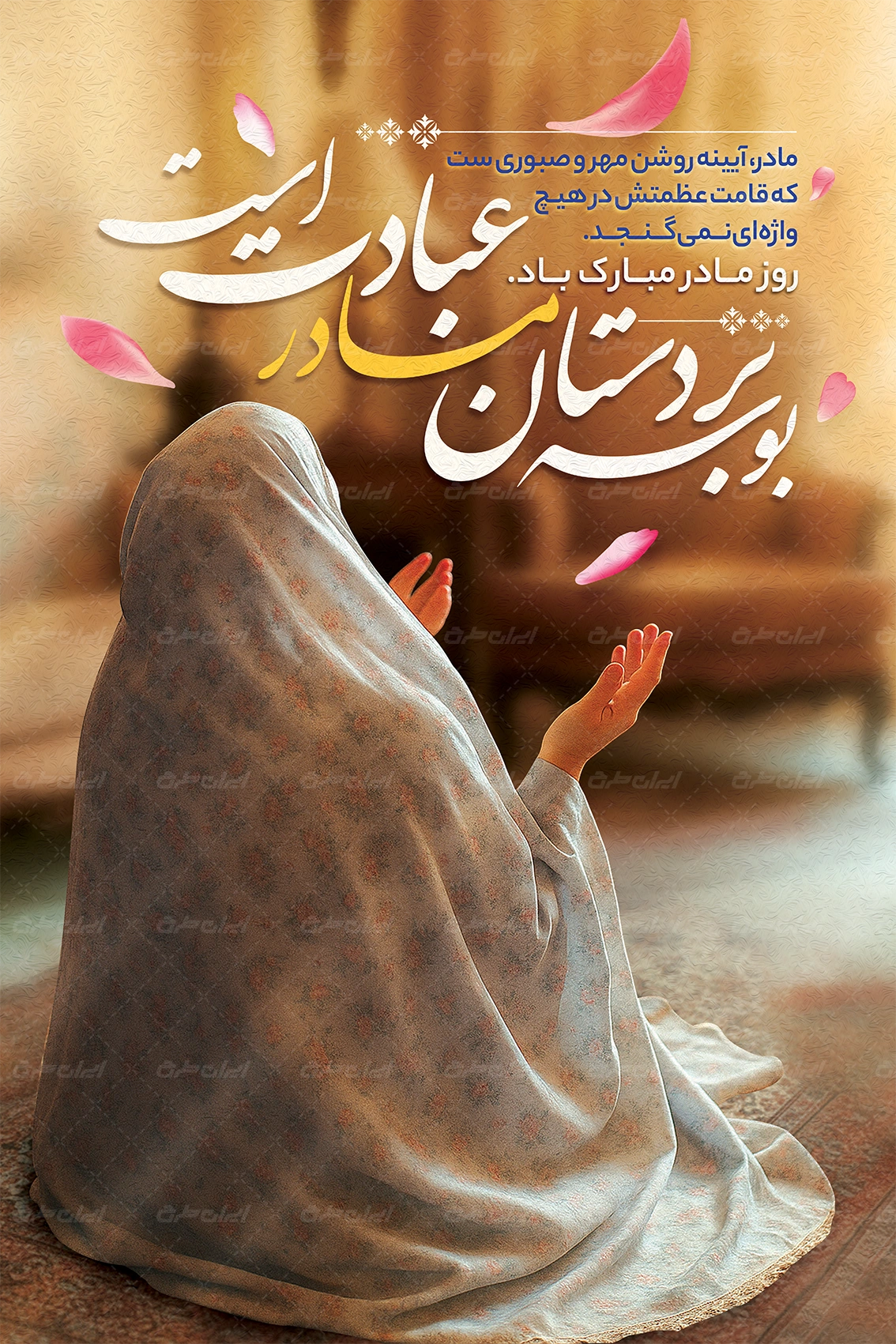 تصویر مادر و متن تبریک روز مادر و روز زن می باشد که توسط تیم ایران طرح طراحی شده است.