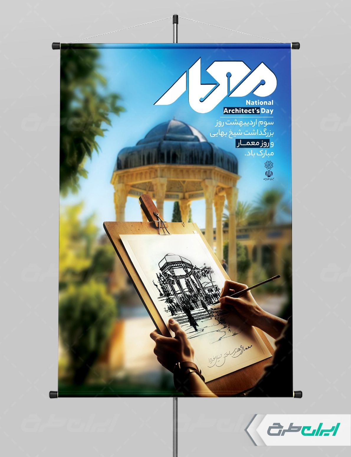 تصویر مقبره حافظ و متن گرامیداشت روز معمار و روز خواجه نصیرالدین طوسی می باشد که توسط تیم ایران طرح طراحی شده است.