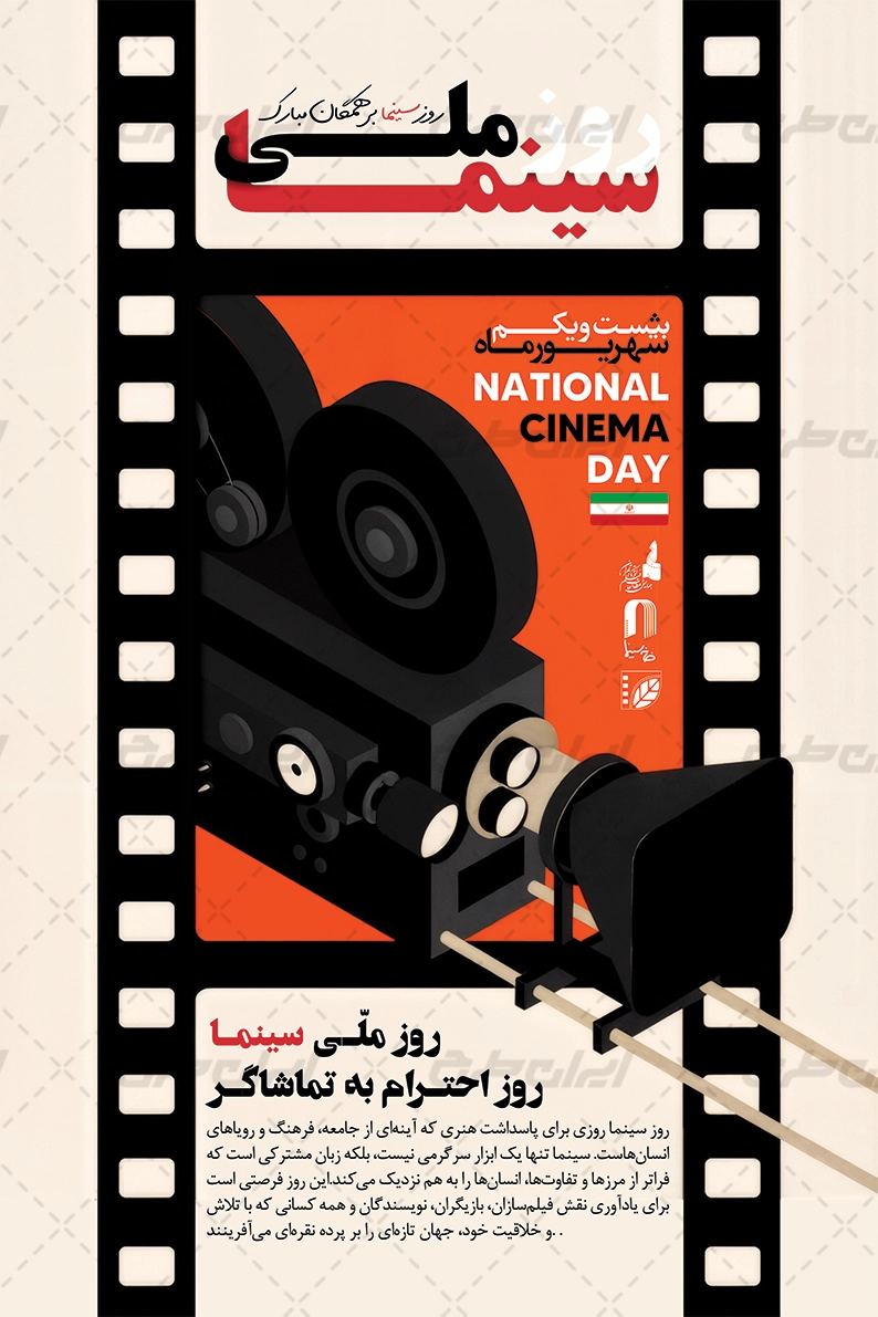 بنر لایه باز روز ملی سینما، توسط تیم با تجربه ایران طرح جهت استفاده کاربران سایت طراحی و به صورت لایه باز در دسترس کاربران قرار گرفته است.