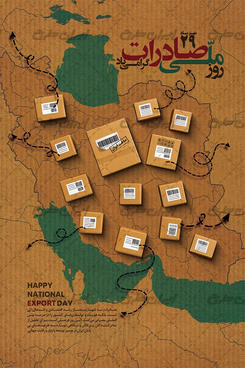 طرح بنر لایه باز روز ملی صادرات، توسط تیم با تجربه ایران طرح جهت استفاده کاربران سایت طراحی و به صورت لایه باز در دسترس کاربران قرار گرفته است.