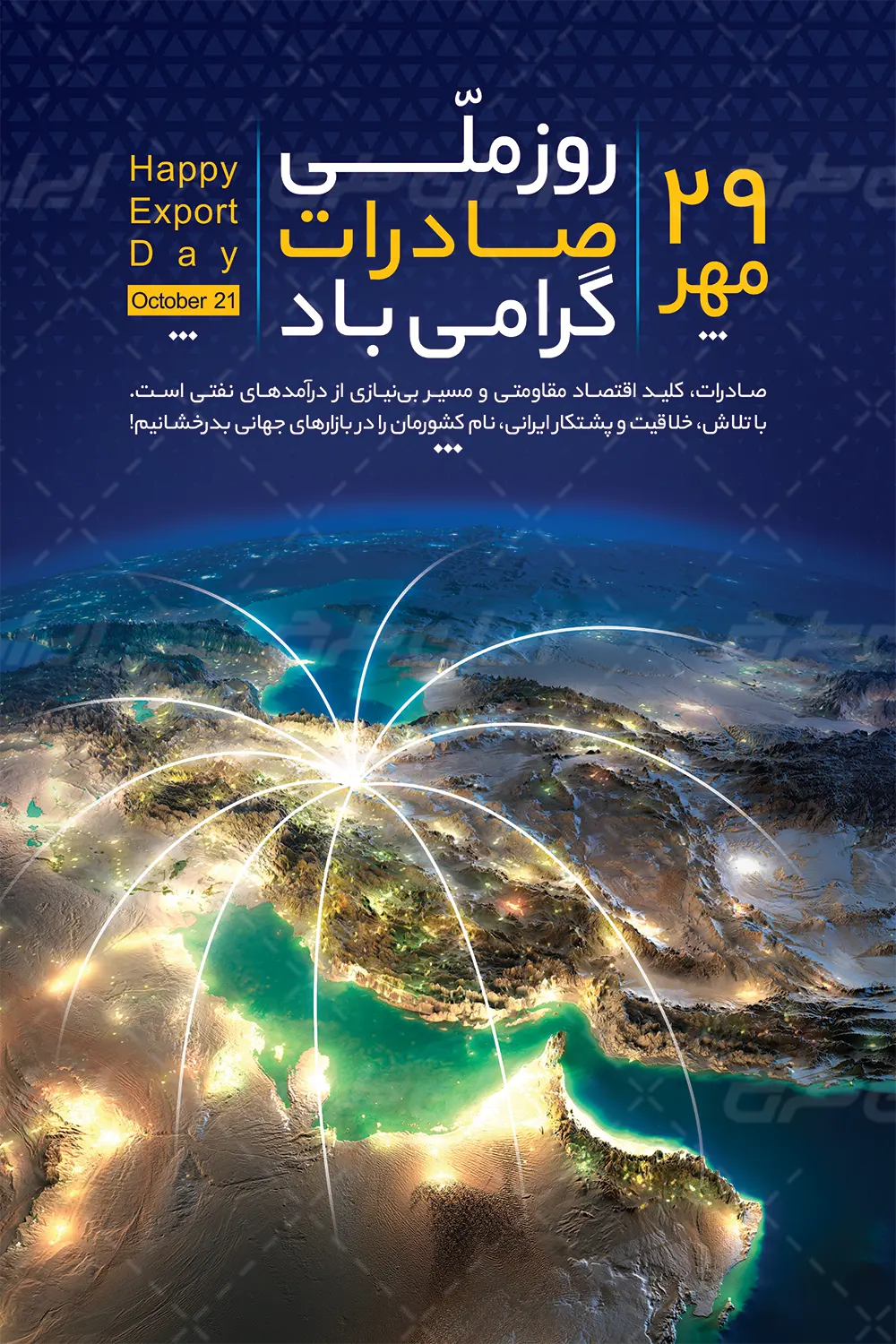 تصویر مرتبط و متن گرامیداشت روز ملی صادرات می باشد که توسط تیم ایران طرح طراحی شده است.