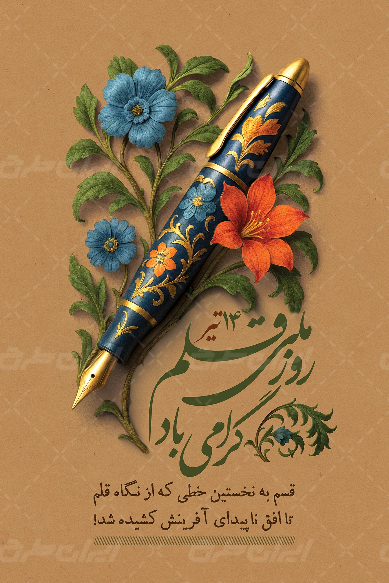 تصویر قلم و متن تبریک روز ملی قلم می باشد که توسط تیم ایران طرح طراحی شده است.