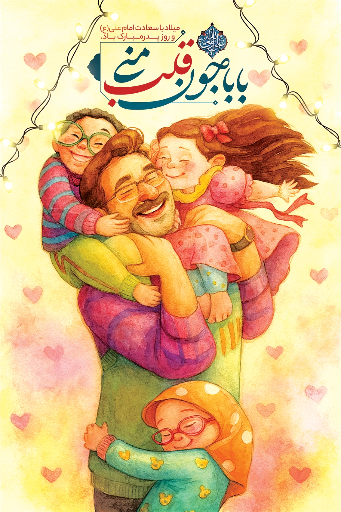 تصویر پدر و فرزند و متن تبریک روز پدر و ولادت امام علی (ع ) می باشد که توسط تیم ایران طرح طراحی شده است.