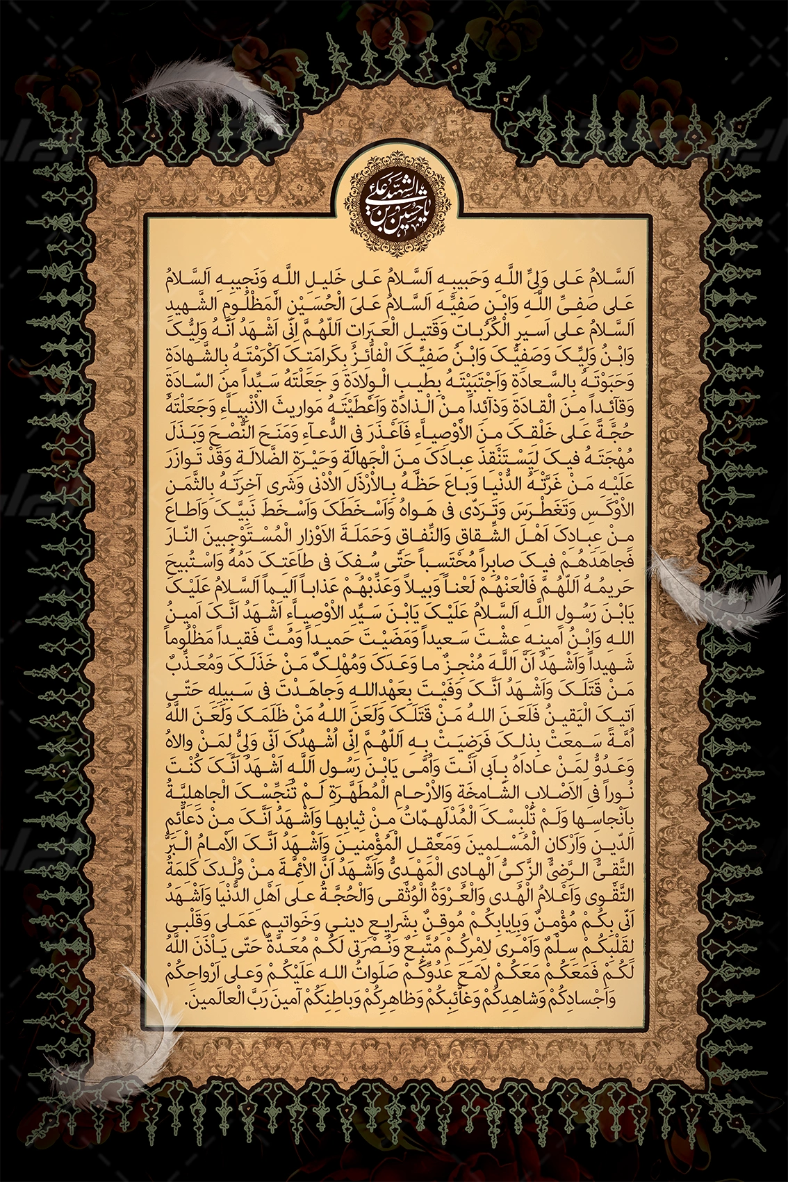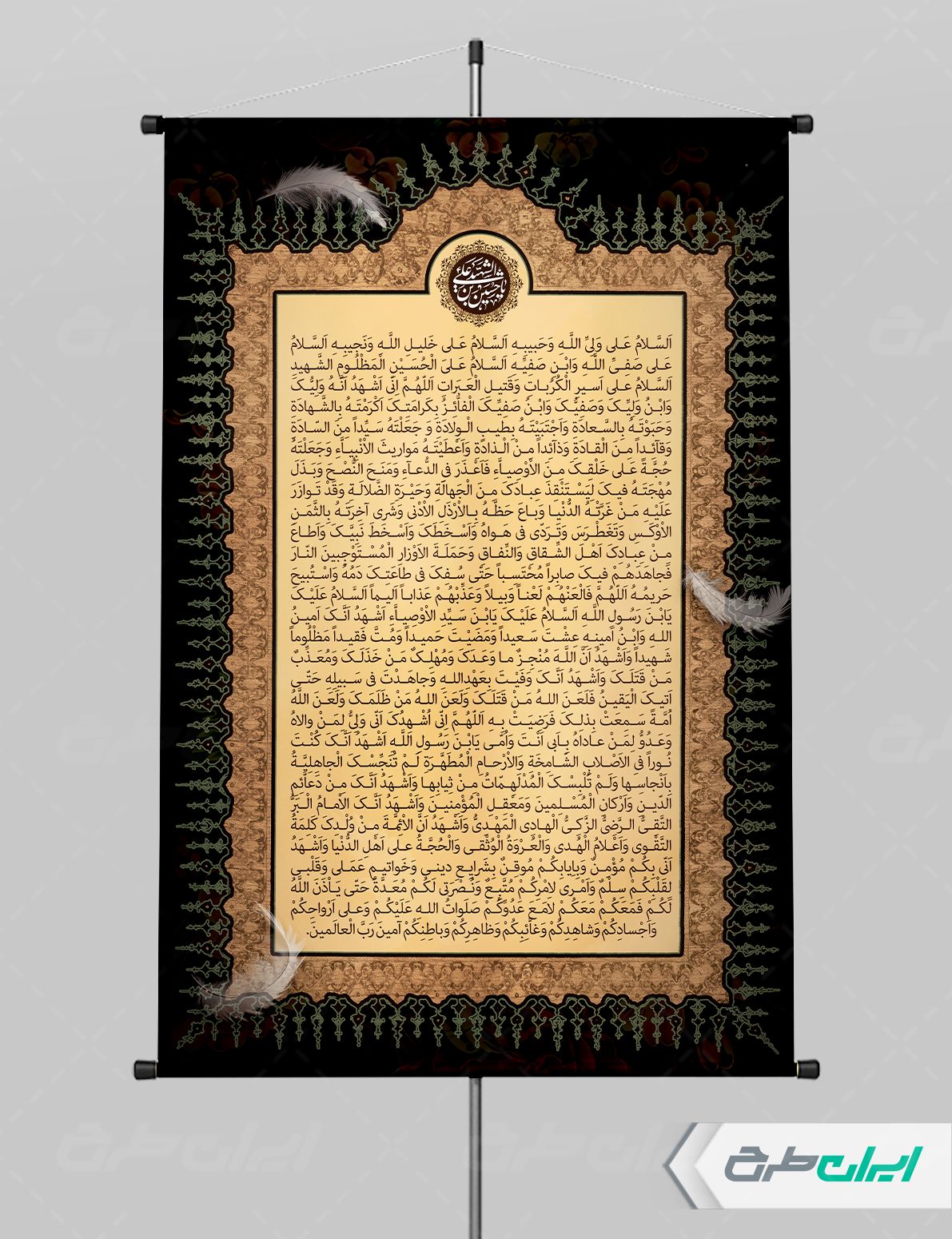 تذهیب و متن دعای اربعین میباشد که توسط طراحان ایران طرح در نرم افزار فتوشاپ طراحی شده است.