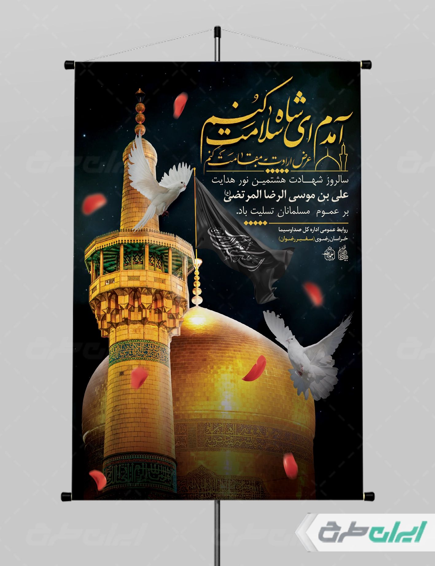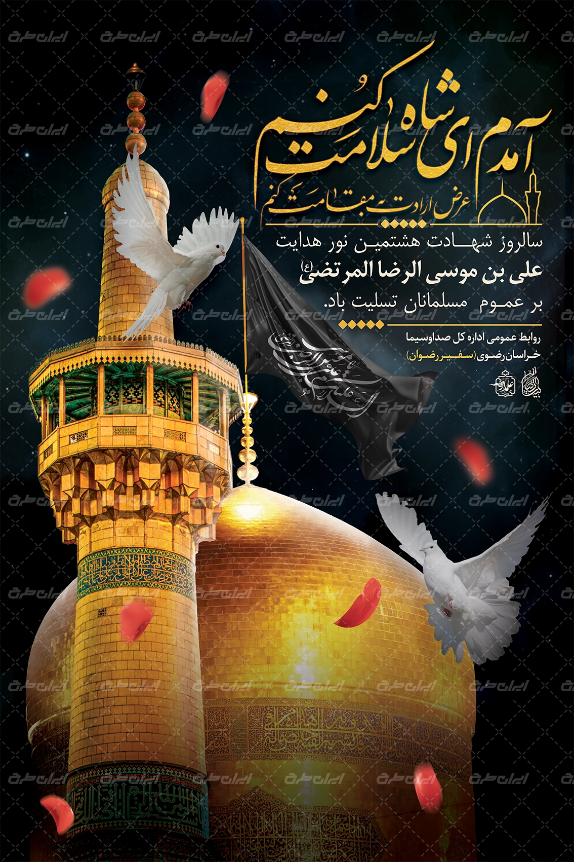 تصویر حرم و متن تسلیت شهادت امام رضا می باشد که توسط تیم ایران طرح طراحی شده است.
