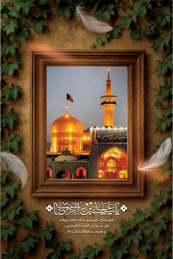 تصویر حرم و متن تسلیت شهادت امام رضا می باشد که توسط تیم ایران طرح طراحی شده است.