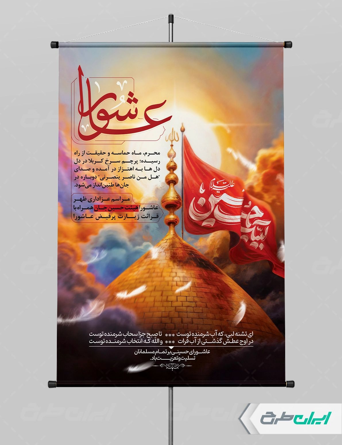 طرح لایه باز بنر عاشورا، جهت استفاده مردم عزادار امام حسین (ع) طراحی و در دسترس کاربران سایت قرار گرفته است.