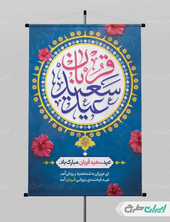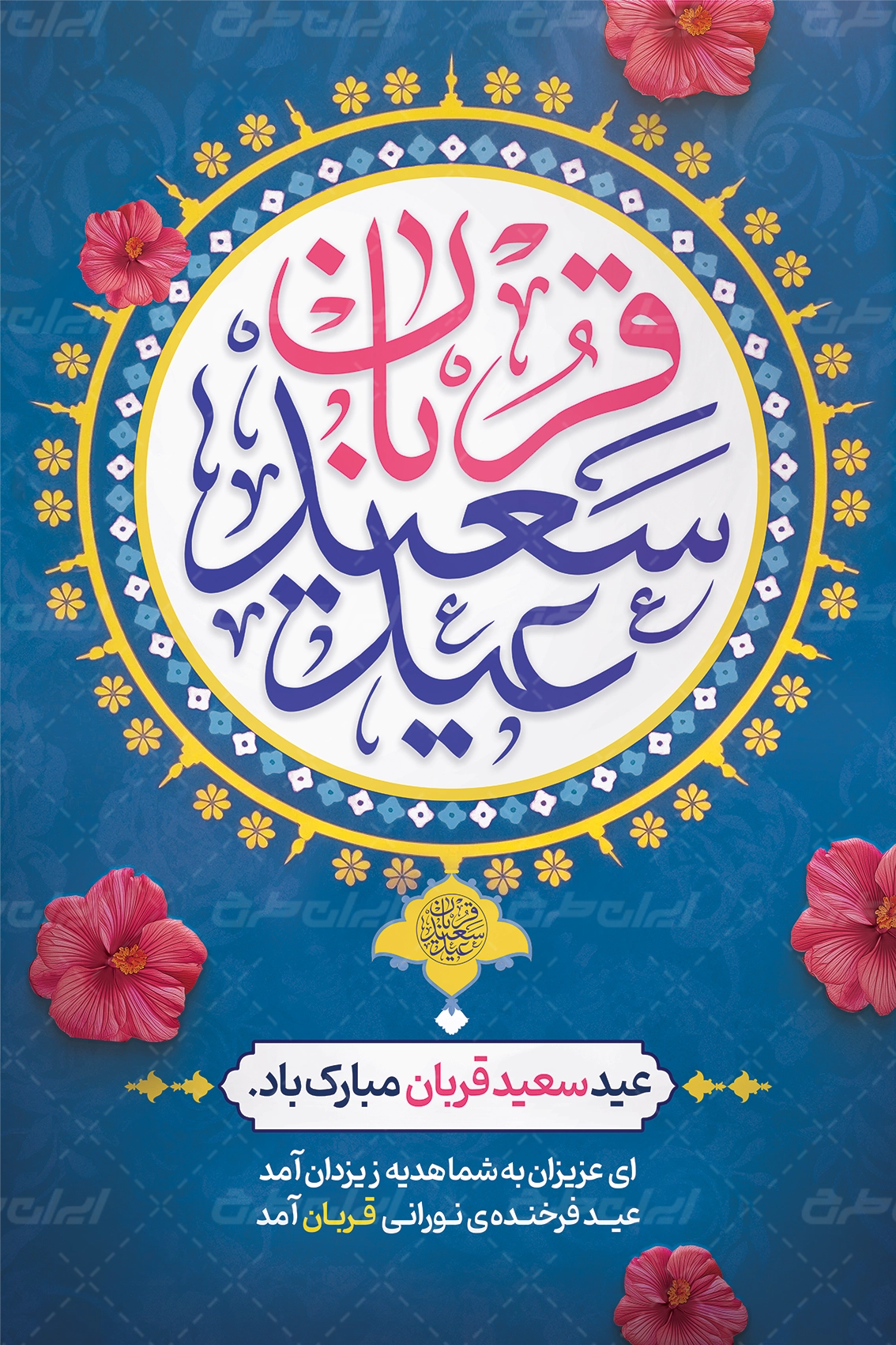 تذهیب و متن تبریک عید قربان می باشد که توسط طراحان ایران طرح در نرم افزار فتوشاپ طراحی شده است.