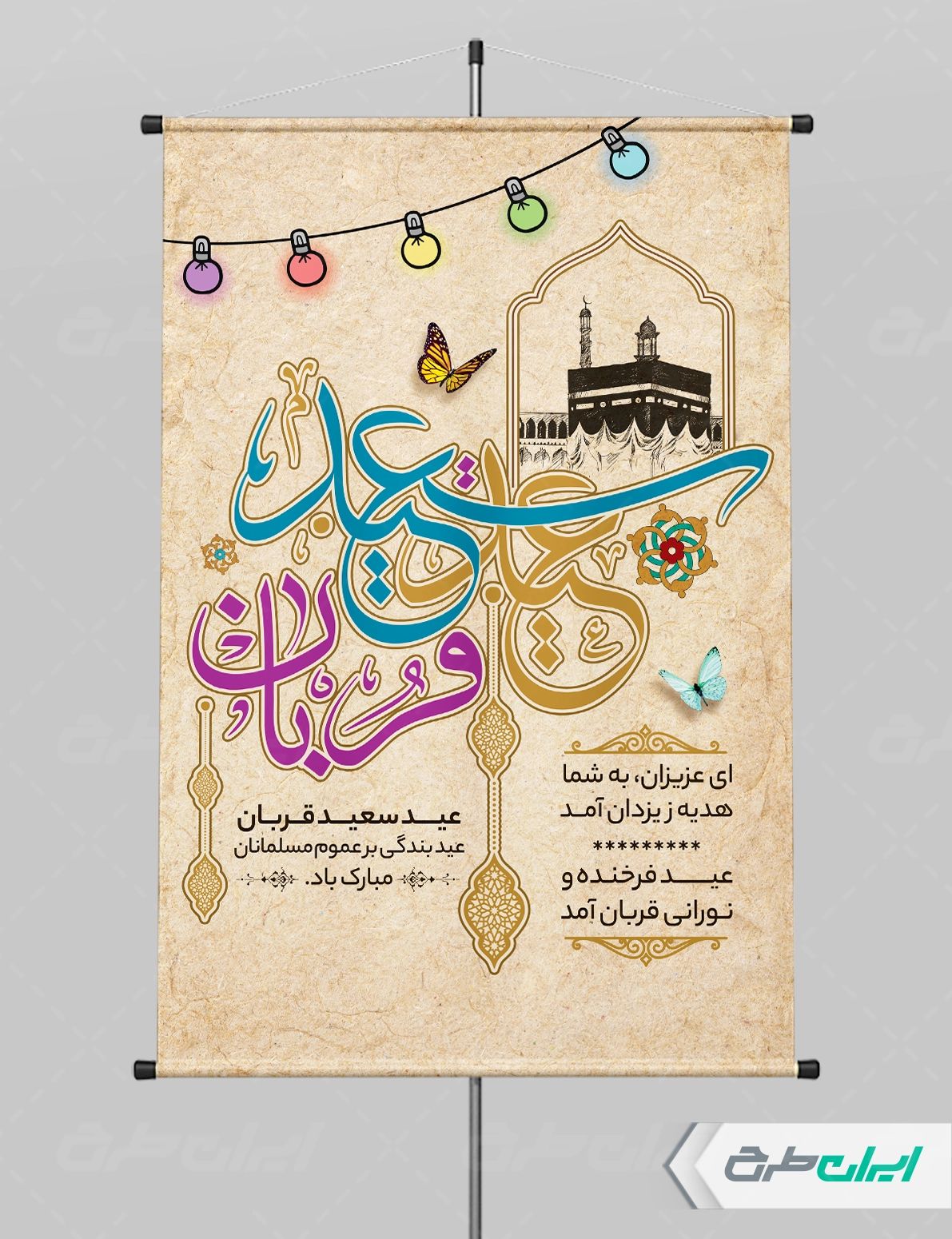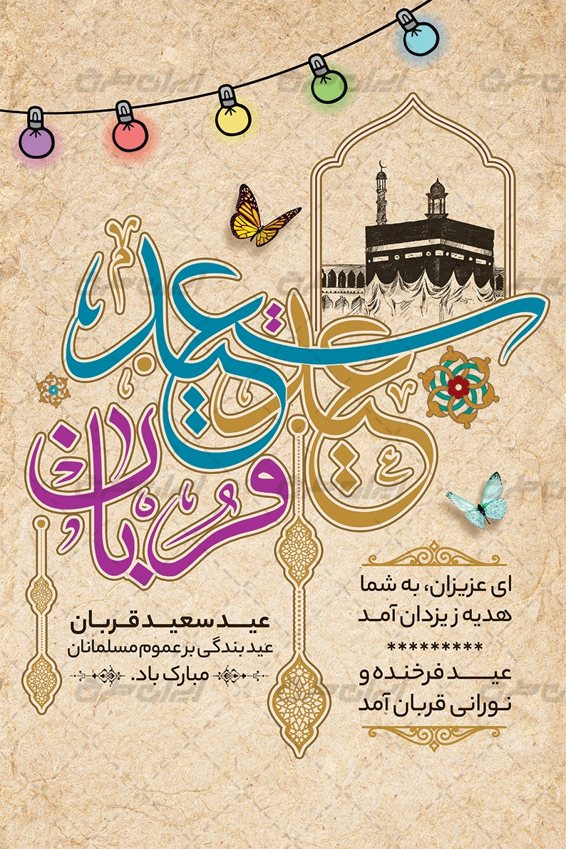 تذهیب و متن تبریک عید قربان می باشد که توسط طراحان ایران طرح در نرم افزار فتوشاپ طراحی شده است.