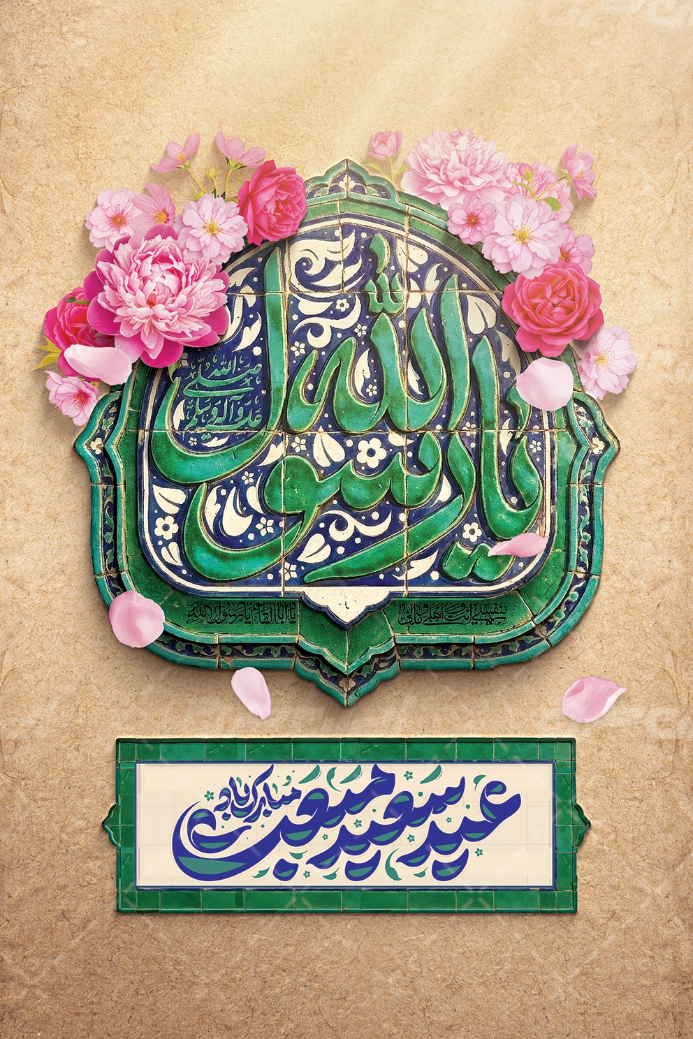 - هم نشینی مناسب رنگ کرم در طرح بنر عید مبعث