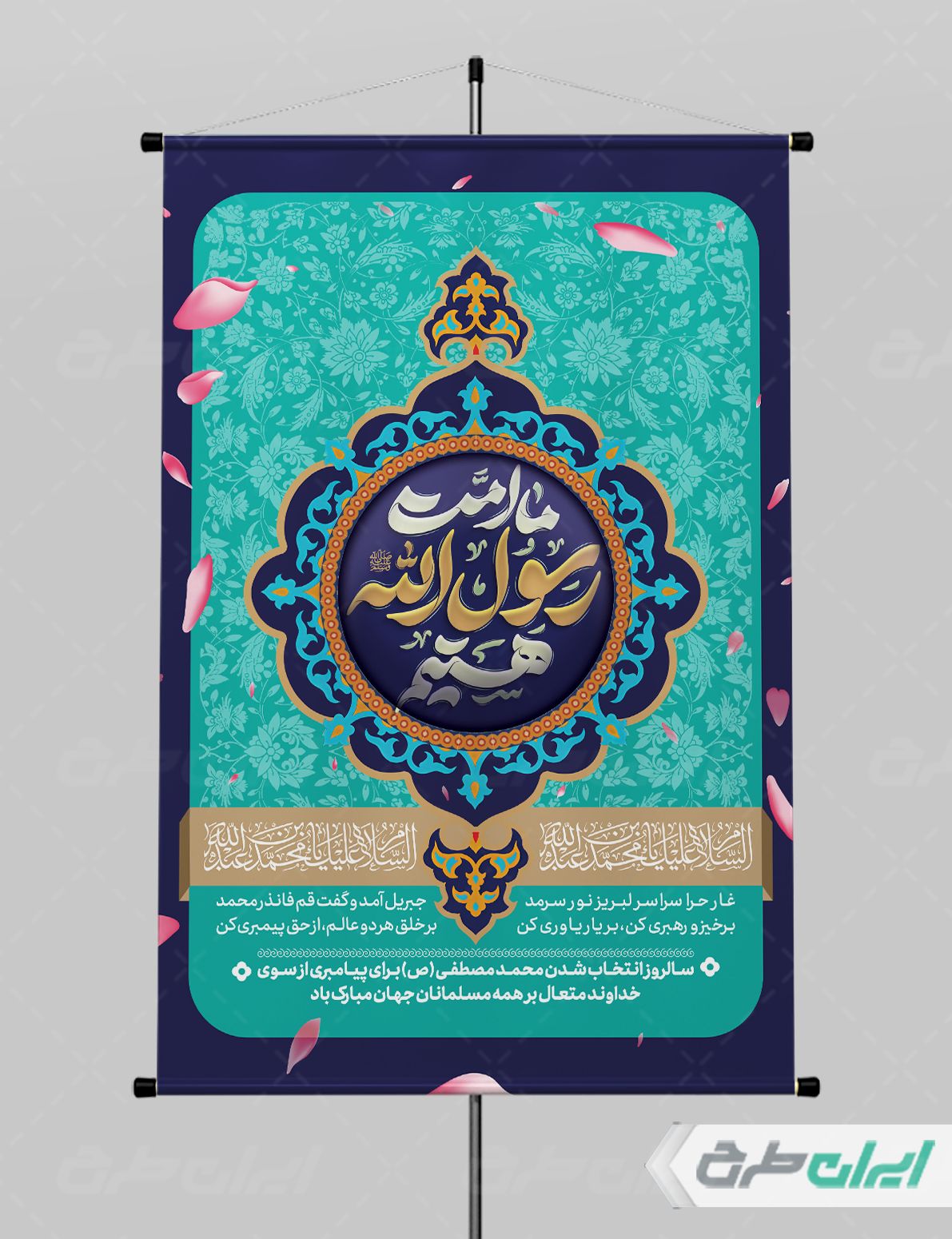 بنر عید مبعث، توسط تیم حرفه ای ایران طرح جهت استفاده کاربران سایت طراحی و به صورت لایه باز در دسترس کاربران قرار گرفته است.