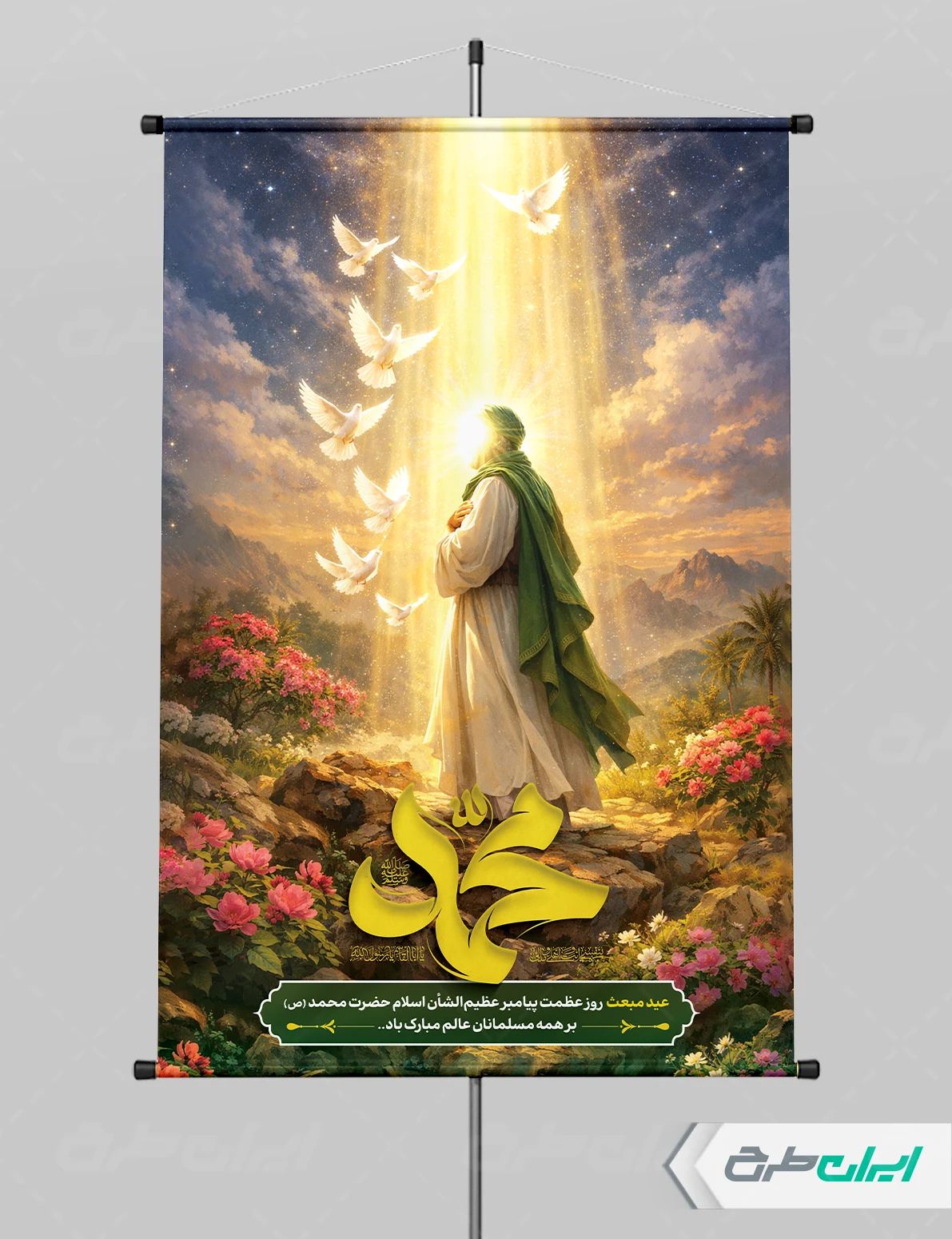 بنر عید مبعث، توسط تیم حرفه ای ایران طرح جهت استفاده کاربران سایت طراحی و به صورت لایه باز در دسترس کاربران قرار گرفته است.