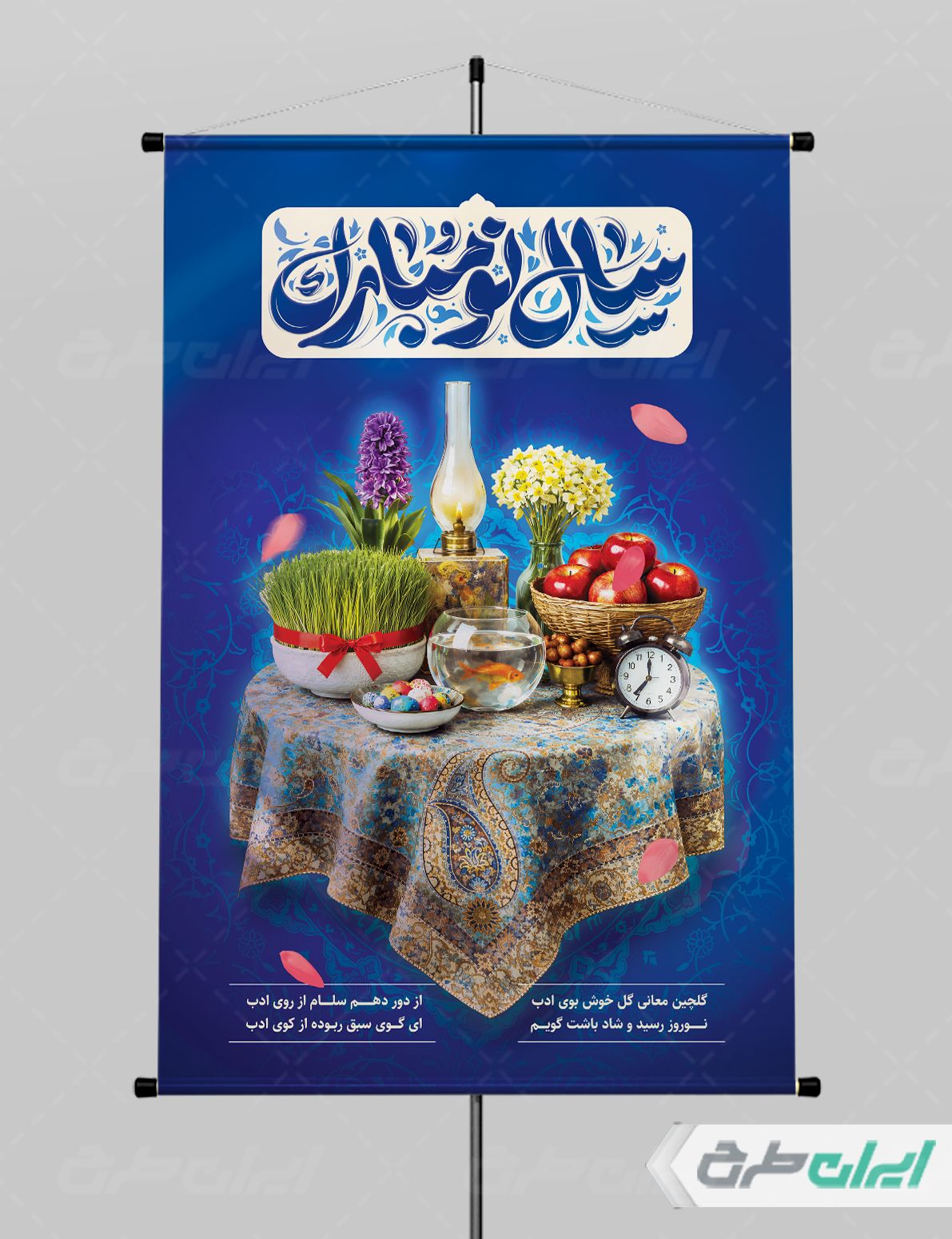 - هم نشینی مناسب رنگ آبی با طرح بنر عید نوروز