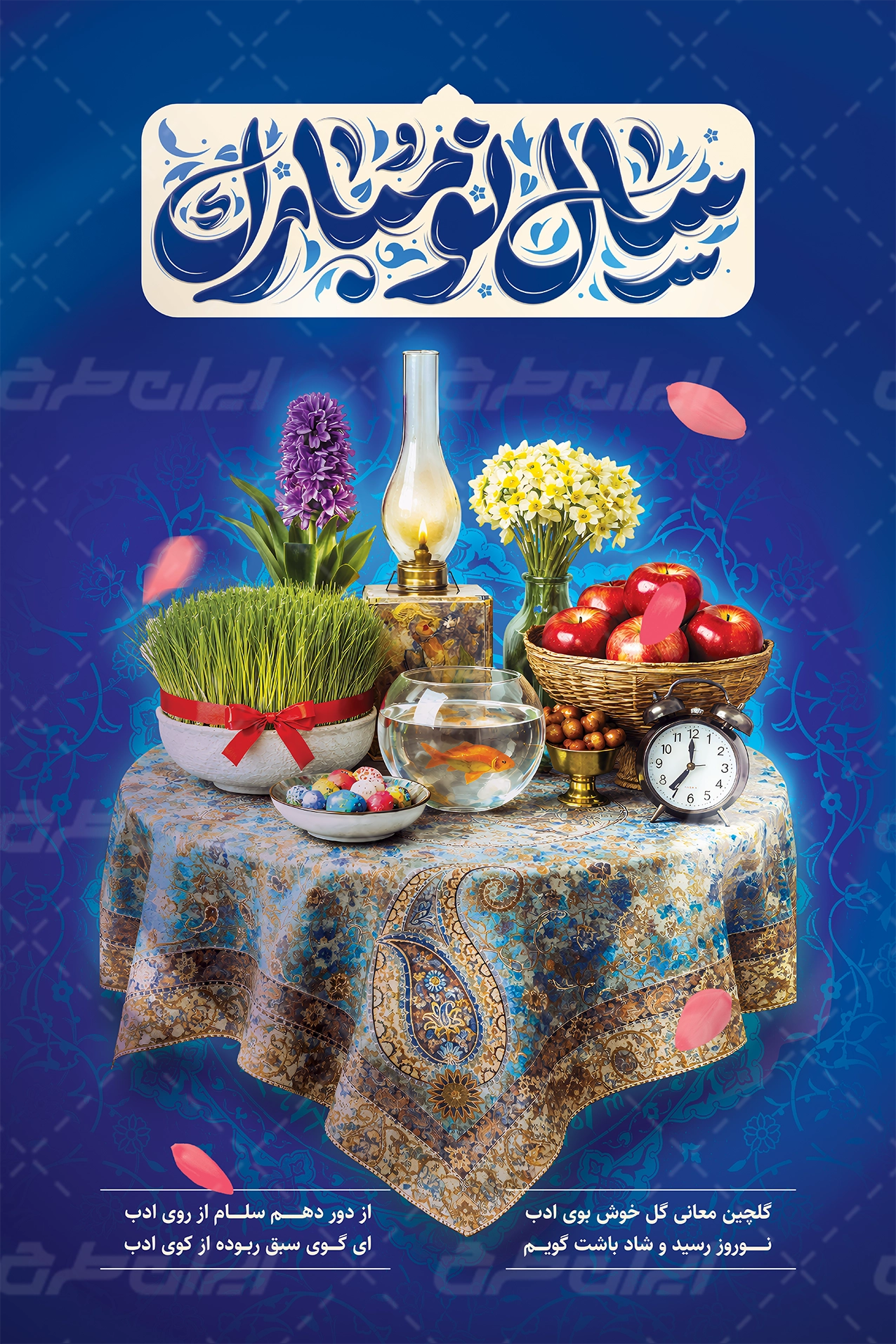 تصویر سبزه، تایپوگرافی سال نو مبارک و متن گرامیداشت عید نوروز می باشد که توسط تیم ایران طرح طراحی شده است.