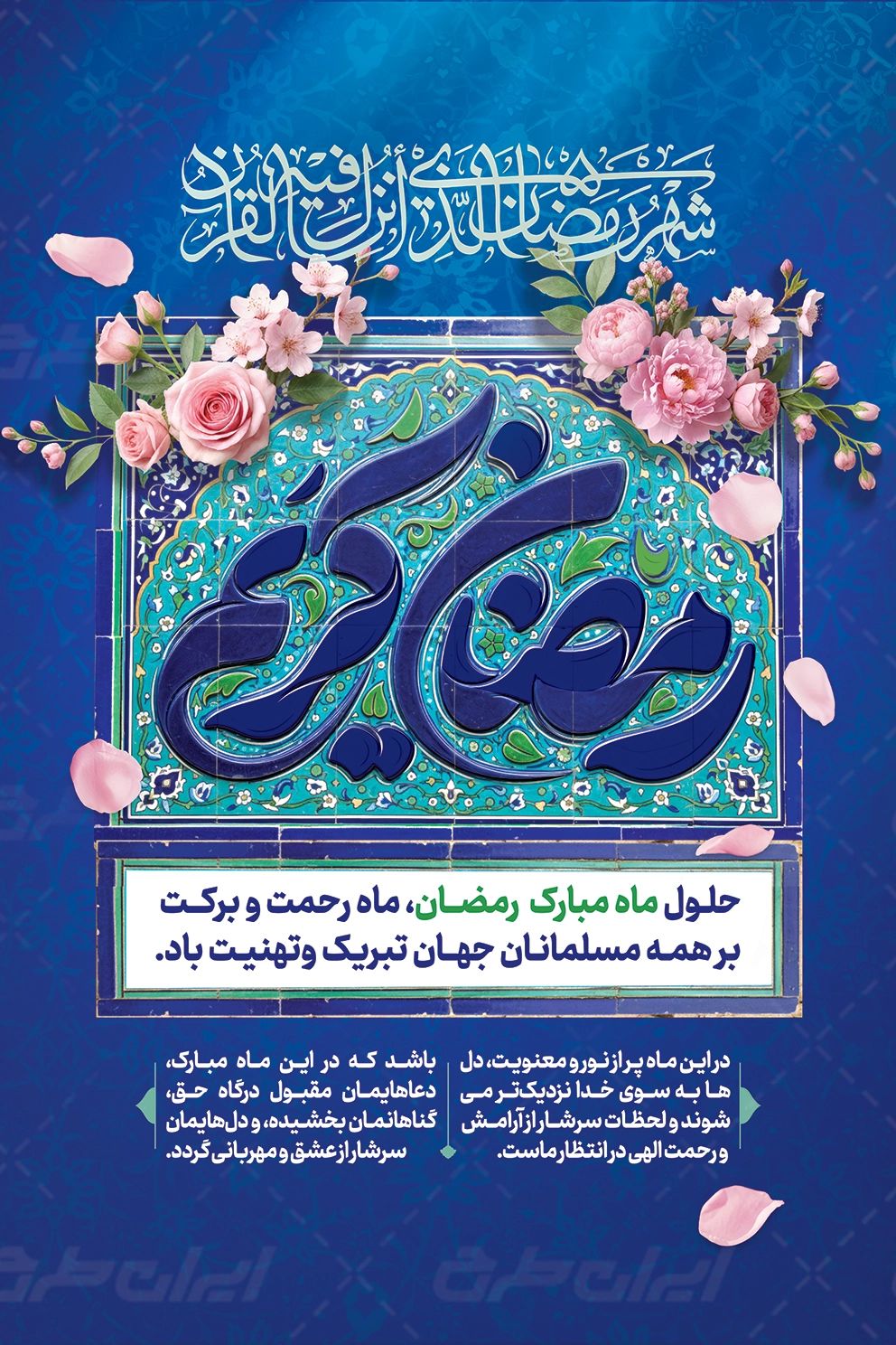 - هم نشینی مناسب رنگ آبی با طرح بنر ماه رمضان