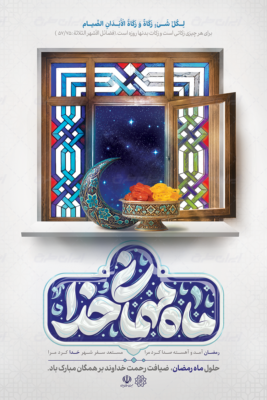 تایپوگرافی ماه مهمان خدا، تصویر زولبیا و بامیه و متن گرامیداشت ماه رمضان می باشد که توسط تیم ایران طرح طراحی شده است.