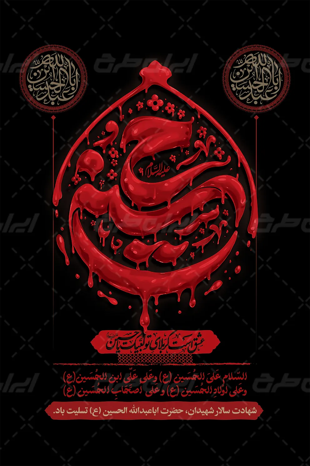 تایپوگرافی حسین و متن تسلیت ایام محرم می باشد که توسط طراحان ایران طرح در نرم افزار فتوشاپ طراحی شده است.