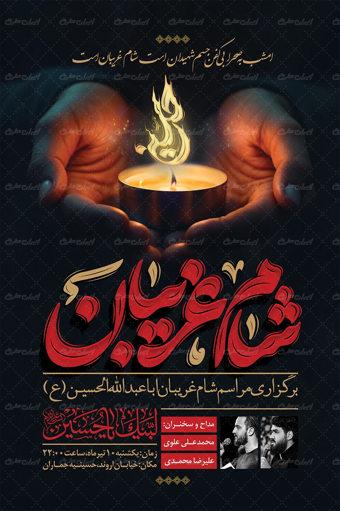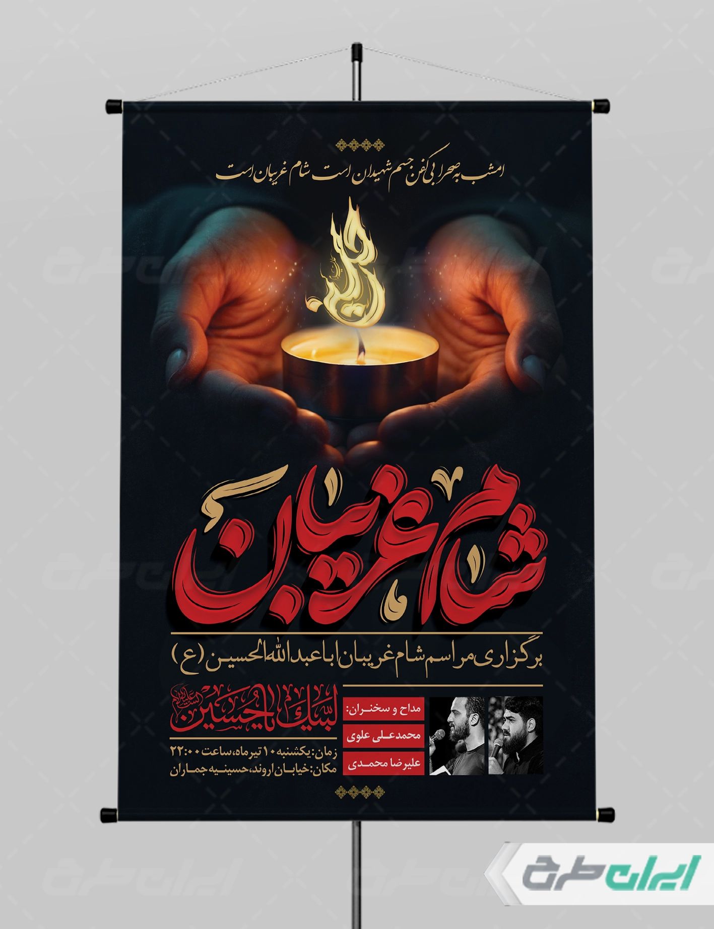 طرح لایه باز بنر مراسم شام غریبان، جهت استفاده مردم عزادار امام حسین (ع) طراحی و در دسترس کاربران سایت قرار گرفته است.