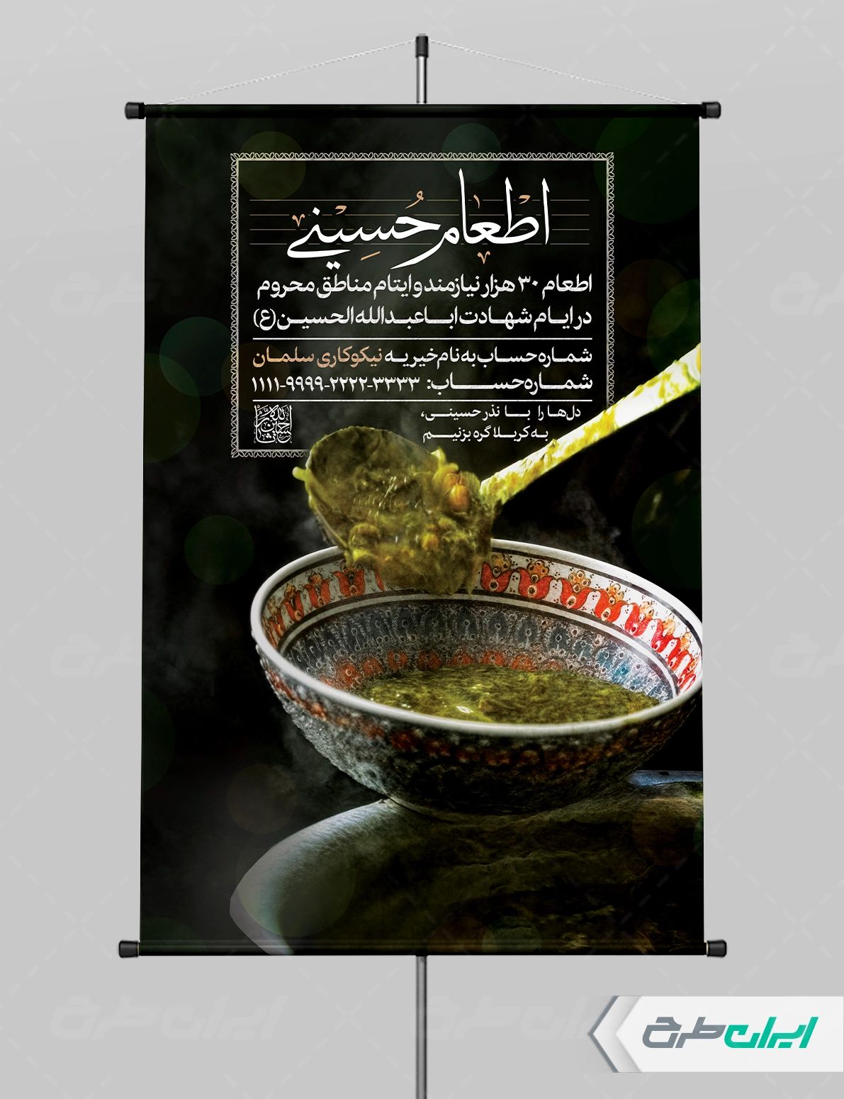 طرح لایه باز پوستر نذری محرم با تایپوگرافی اطعام حسینی