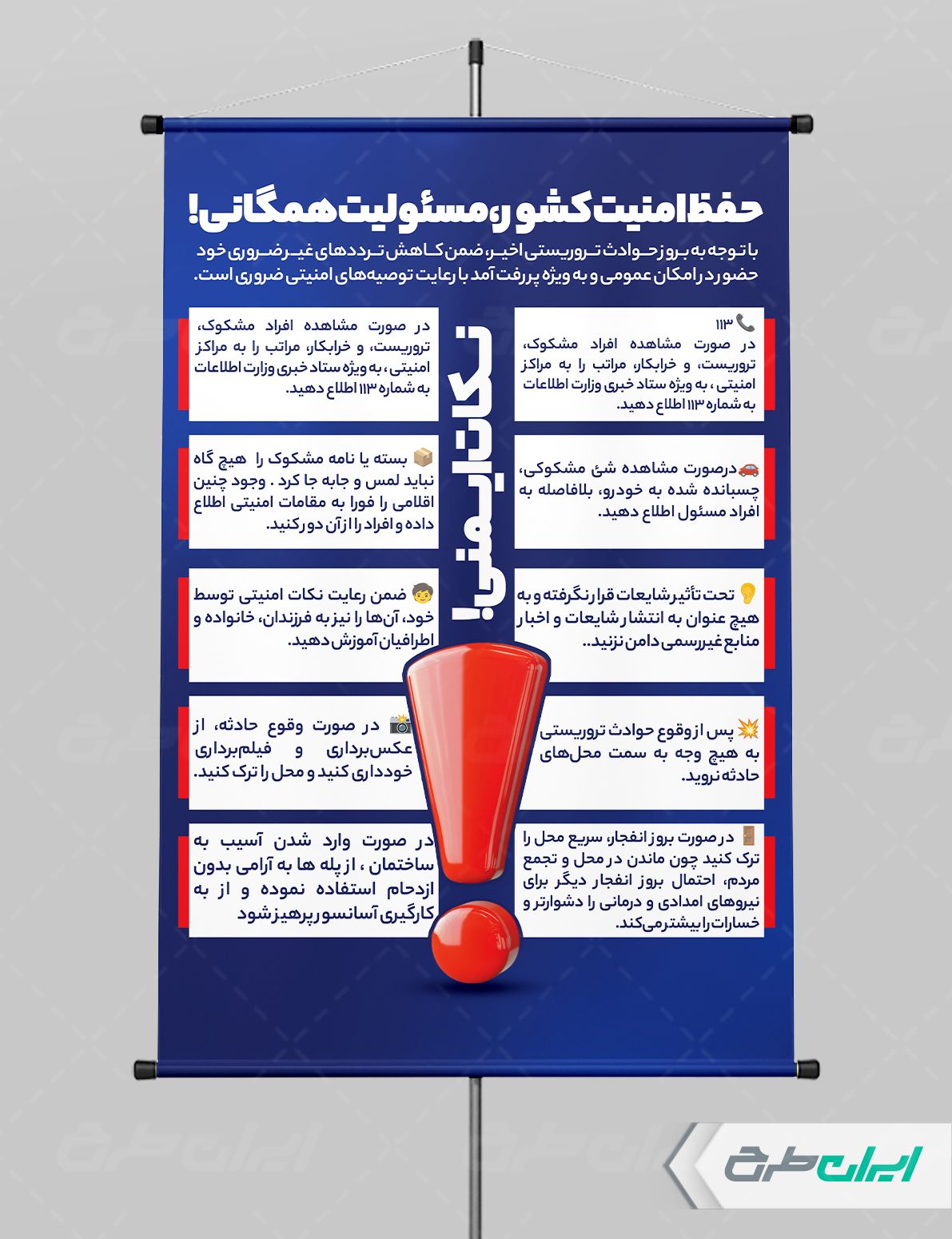 طرح بنر نکات امنیتی توسط تیم ایران طرح طراحی و در دسترس کاربران سایت قرار گرفته است.