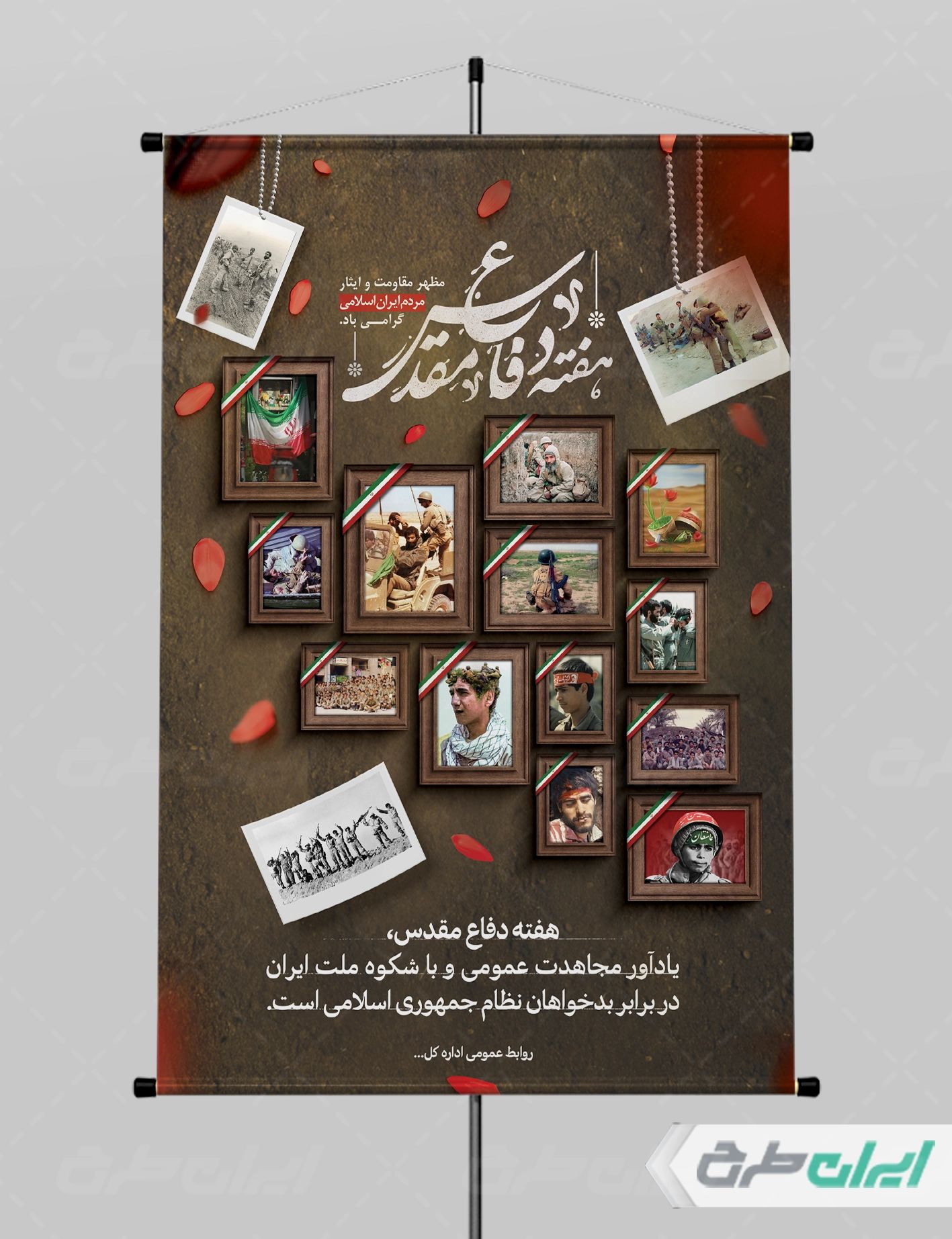 بنر لایه باز هفته دفاع مقدس، توسط تیم حرفه ای ایران طرح جهت استفاده کاربران سایت طراحی و به صورت لایه باز در دسترس کاربران قرار گرفته است.