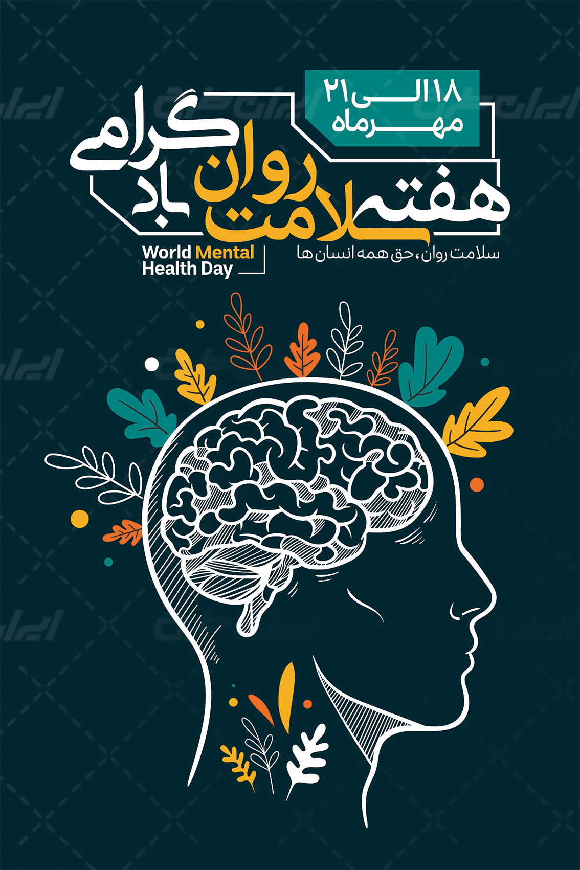 تصویر مغز و متن گرامیداشت روز جهانی بهداشت روان می باشد که توسط تیم ایران طرح طراحی شده است.