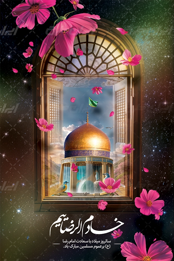 تصویر حرم و متن گرامیداشت ولادت امام رضا (ع) می باشد که توسط تیم ایران طرح طراحی شده است.