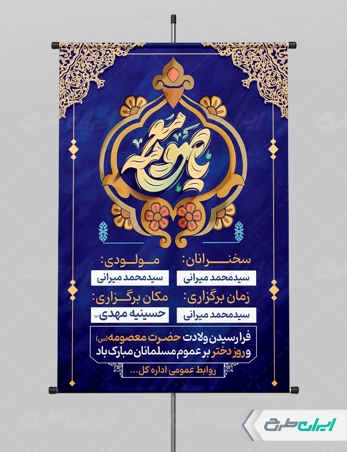 بنر ولادت حضرت معصومه (س)، توسط تیم حرفه ای ایران طرح جهت استفاده کاربران سایت طراحی و به صورت لایه باز در دسترس کاربران قرار گرفته است.