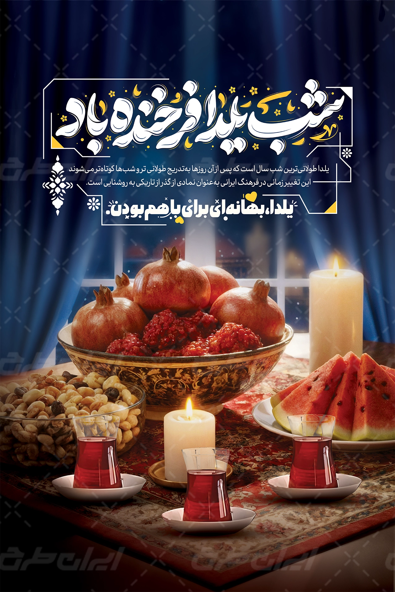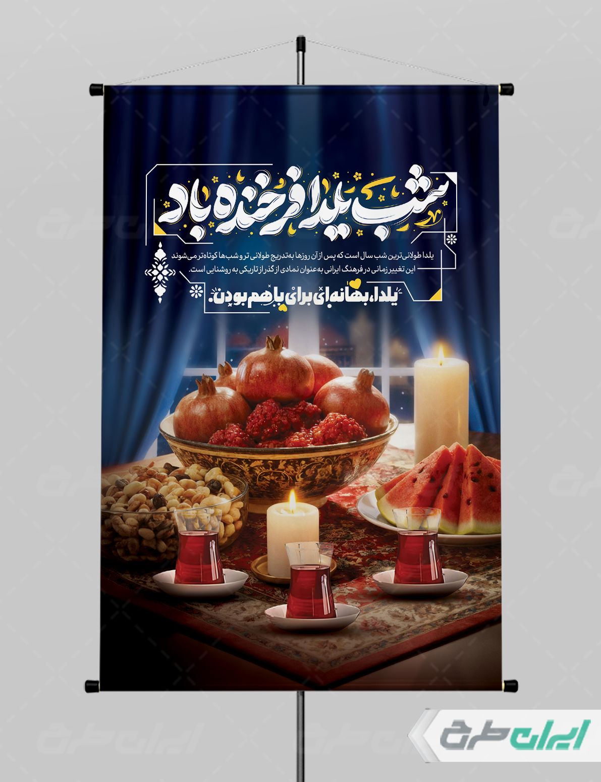 بنر شب یلدا ، توسط تیم حرفه ای ایران طرح جهت استفاده کاربران سایت طراحی و به صورت لایه باز در دسترس کاربران قرار گرفته است.