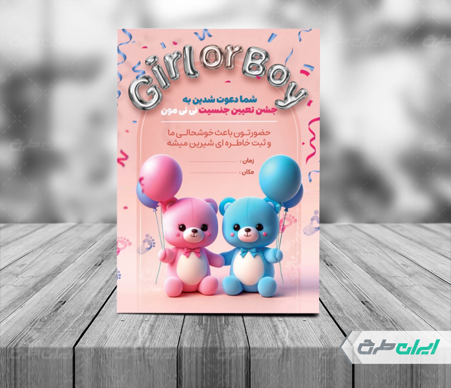 طرح جشن تعیین جنسیت و متن دعوت جشن تعیین جنسیت می باشد که توسط طراحان ایران طرح در نرم افزار فتوشاپ طراحی شده است.
