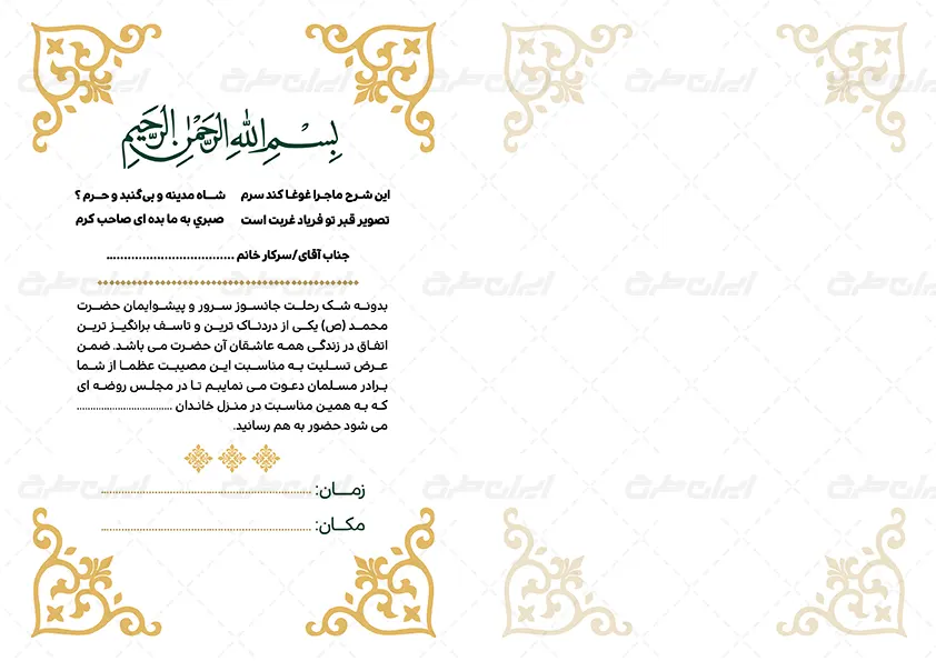 طرح کارت دعوت نامه روضه خوانی شامل: