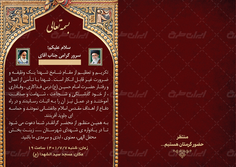 مشخصات فنی کارت دعوت مراسم بزرگداشت شهدا