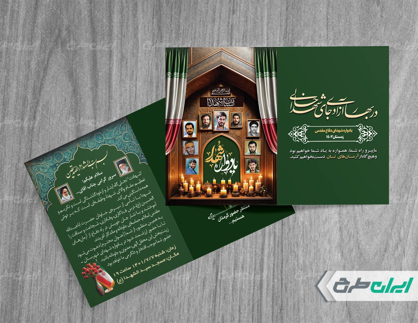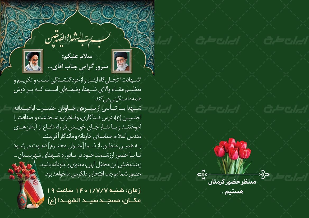 طرح کارت دعوت یادواره شهدا شامل: