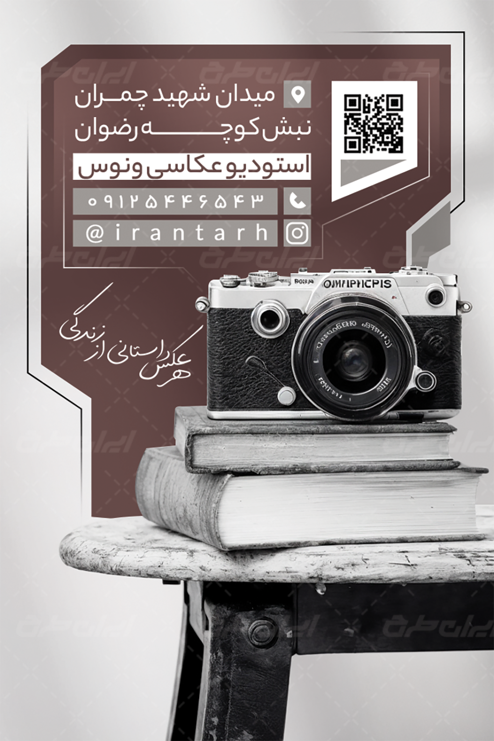 طرح کارت ویزیت فروشگاه آتلیه عکاسی و فیلمبرداری شامل:
