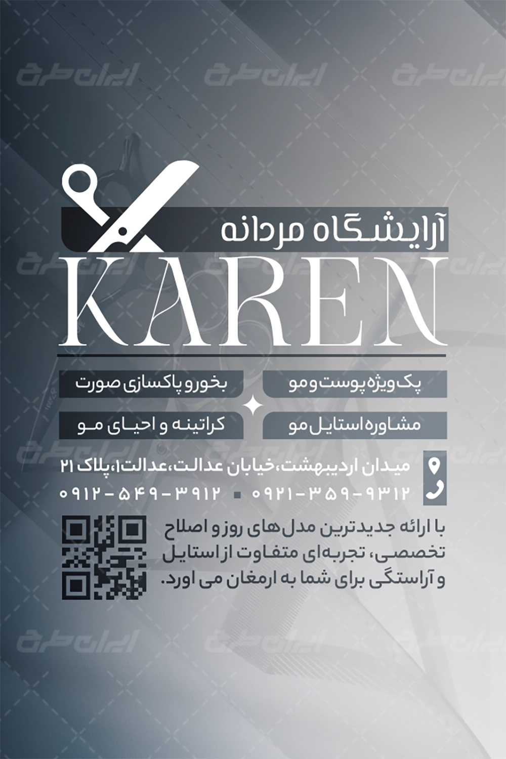 طرح کارت ویزیت آرایشگاه مردانه شامل: