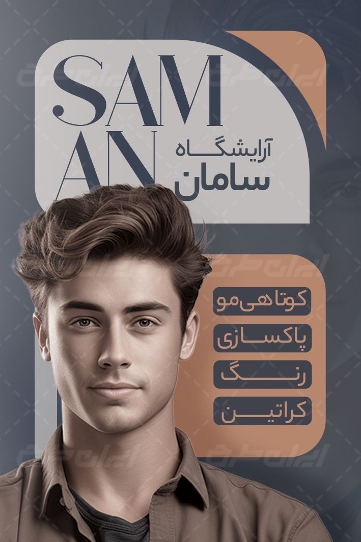 - استفاده مناسب از عکس با کیفیت مدل مرد مرتبط با شغل آرایشگری