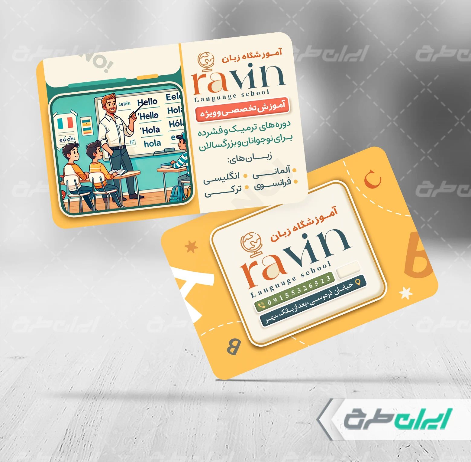 طرح کارت ویزیت آموزشگاه زبان، جهت بازاریابی و تبلیغات این دسته از آموزشگاه ها توسط تیم طراحان ایران طرح طراحی و در دسترس کاربران سایت قرار گرفته است.