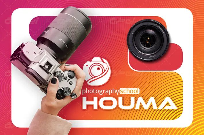 - استفاده مناسب از تصویر دوربین عکاسی که مناسب طرح کارت ویزیت لایه باز آموزش عکاسی می باشد.