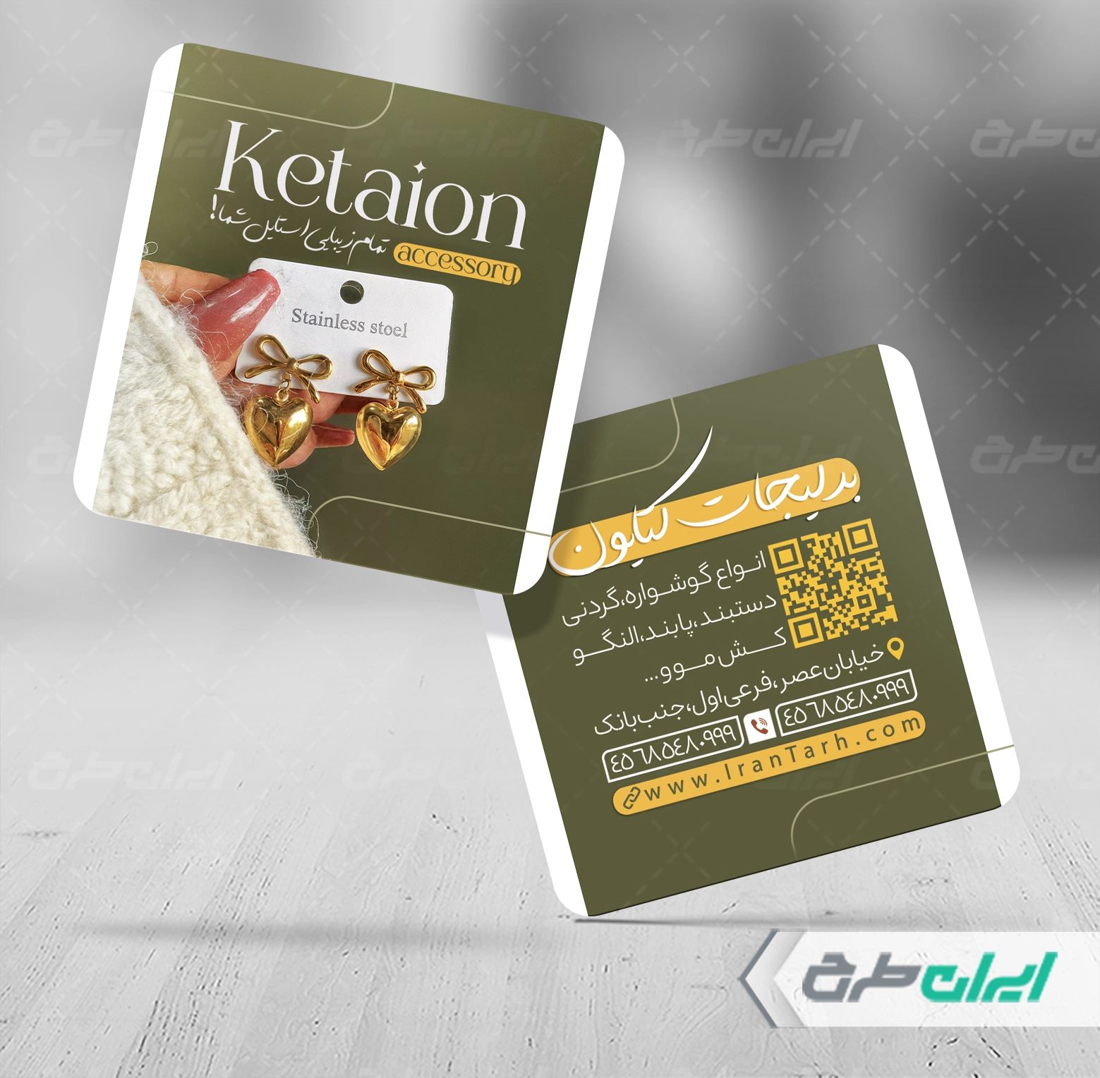 طرح کارت ویزیت فروشگاه اکسسوری و بدلیجات، جهت بازاریابی و تبلیغات این فروشگاه ها توسط ایران طرح طراحی و در اختیار کاربران سایت قرار گرفته است.