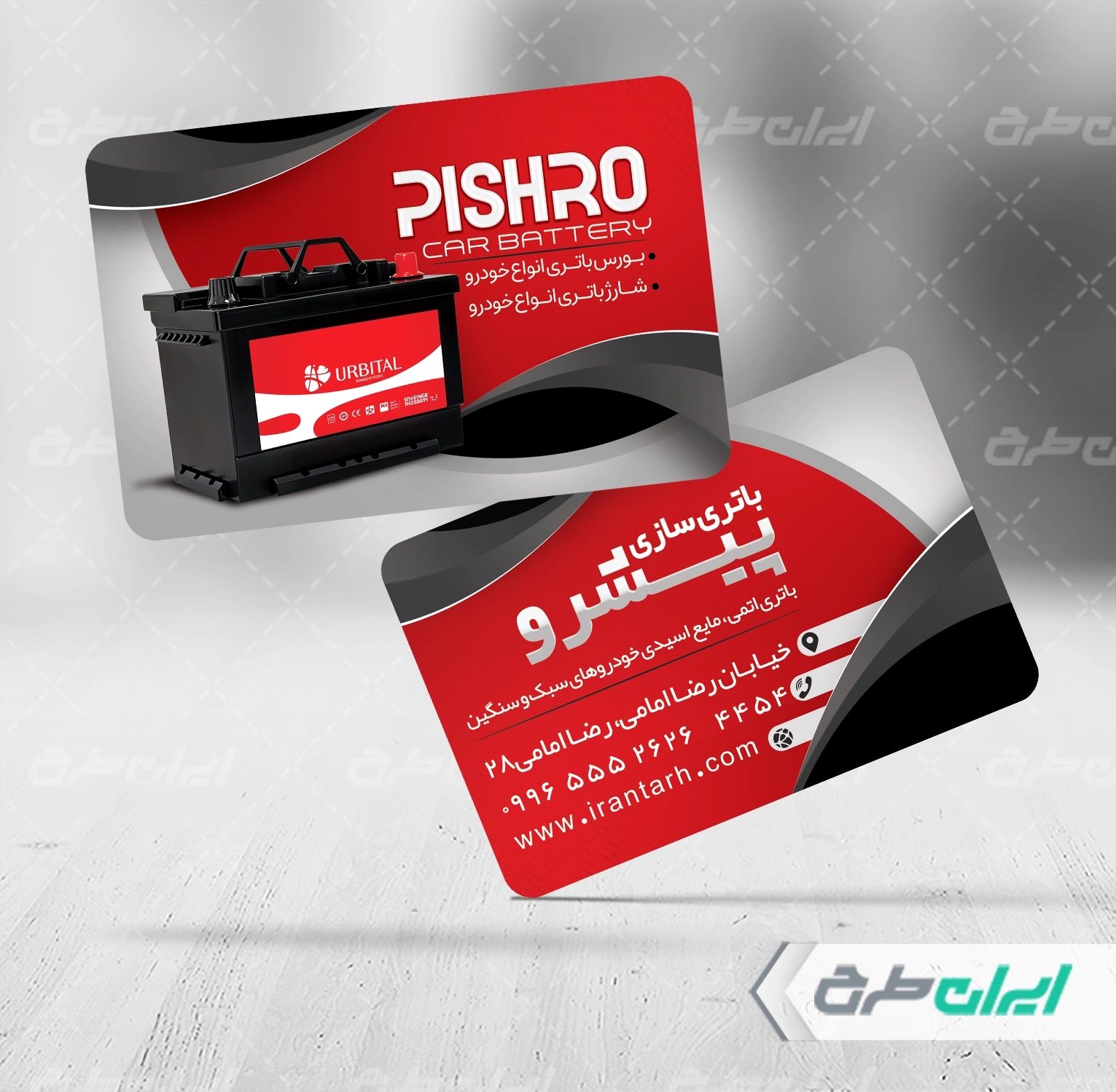 - طراحی با استفاده از تصویر باطری خودرو در طرح کارت ویزیت باطری سازی