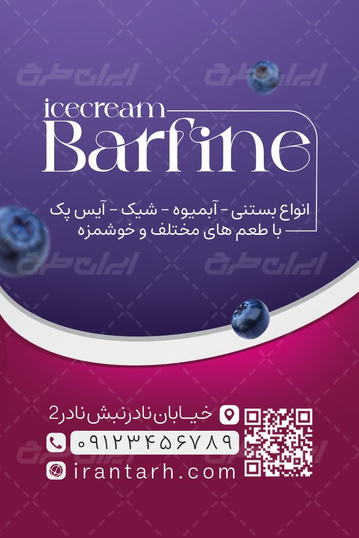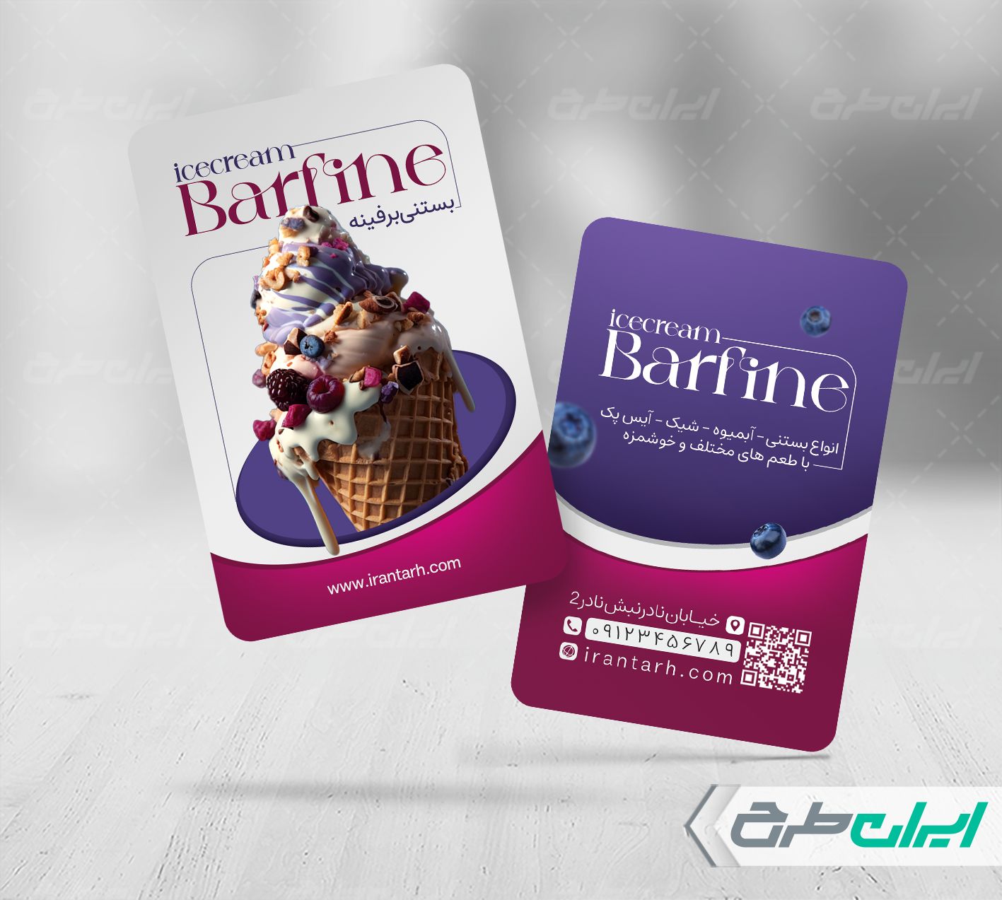 کارت ویزیت بستنی فروشی ،جهت تبلیغات این دسته از مشاغل توسط تیم ایران طرح طراحی شده است.