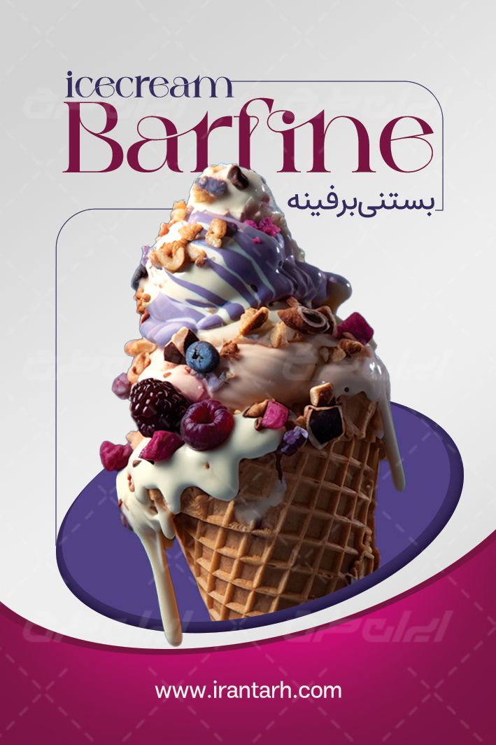 - همنشینی مناسب رنگ بنفش با طرح بستنی فروشی