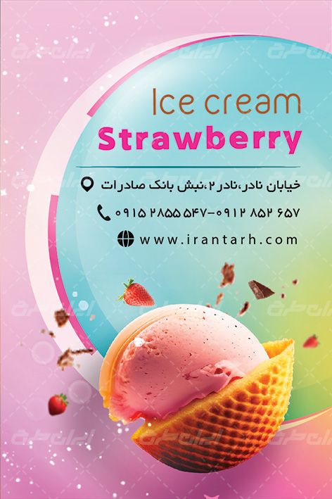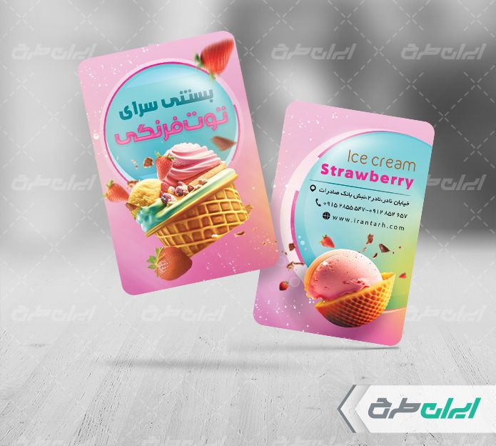 کارت ویزیت بستنی فروشی ،جهت تبلیغات این دسته از فروشگاه ها توسط تیم ایران طرح طراحی شده است.