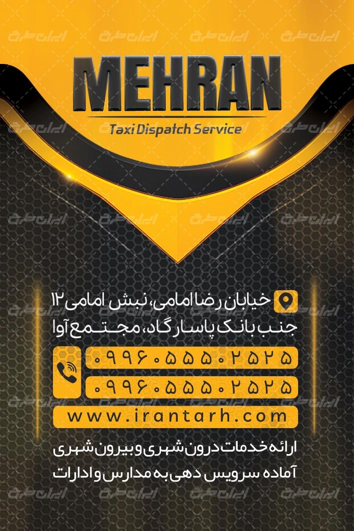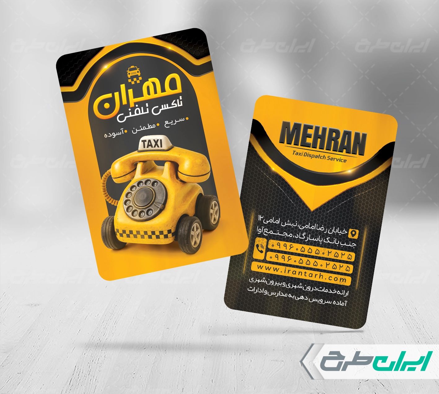 کارت ویزیت تاکسی سرویس ،جهت تبلیغات این دسته از مشاغل توسط تیم ایران طرح طراحی شده است.