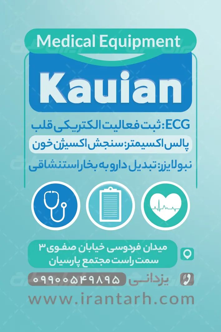 کارت ویزیت لایه باز کالای طبی، توسط طراحان ایران طرح برای این شغل طراحی و در دسترس کابران سایت قرار گرفته است.