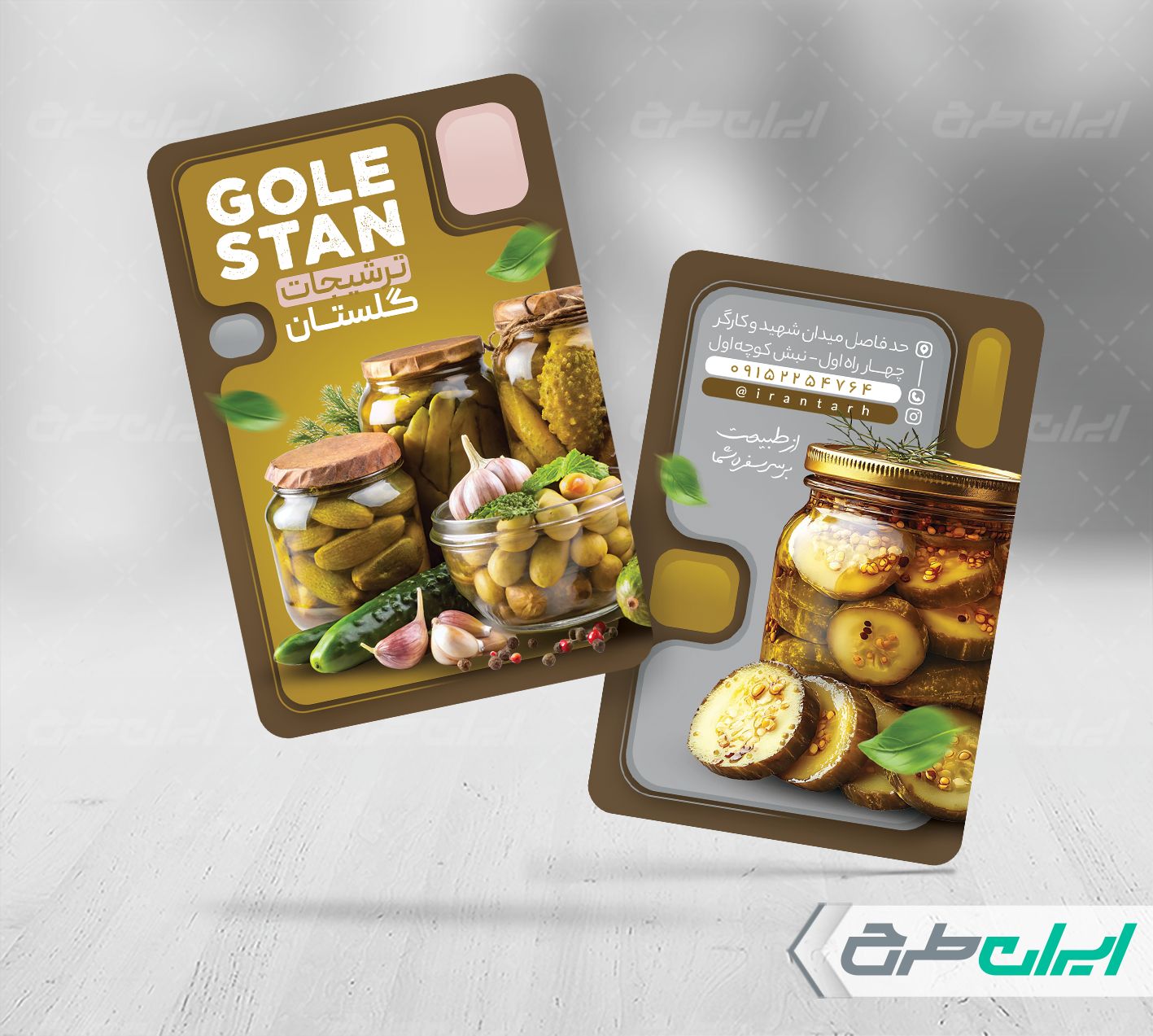 طرح لایه باز کارت ویزیت فروشگاه ترشیجات، جهت بازاریابی و تبلیغات این دسته از فروشگاه ها توسط تیم طراحان ایران طرح طراحی و در دسترس کاربران سایت قرار گرفته است.