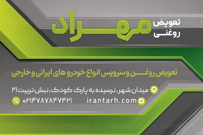 طرح کارت ویزیت تعویض روغنی شامل: